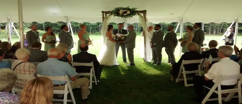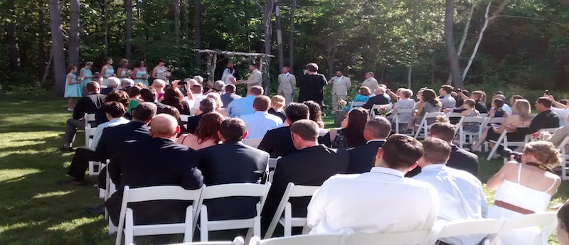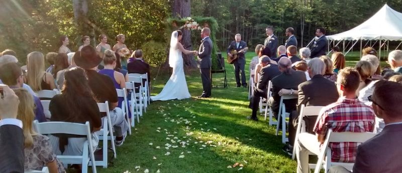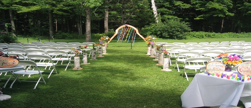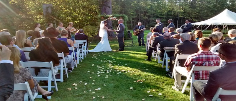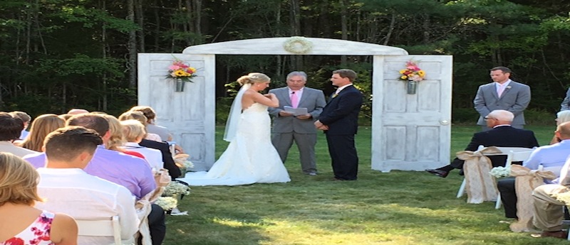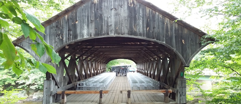 Big Adventure Weddings offers a variety of different Wedding Ceremony Locations to make your wedding day extra adventurous and memorable. Our most popular is along the scenic Androscoggin River with a most picturesque backdrop of a Sunday River Covered Paddleford Truss Bridge with a private majestic pond at your footsteps for those priceless album pictures. If these are not good enough ... take advantage of the no cost Sunday River Artisan Covered Bridge in Newry, Bethel Historic District Downtown Gazebo, or a Traditional Local Church Ceremony. The wedding coordinator will work with you to set up all the seating and necessary decorations depending on your wedding ceremony selection. A High Top Tension Tent can be rented to mitigate any weather related issues and used later for the Rehearsal, Kid Lawn Games, and/or Post Wedding Brunch Events at no extra charge. We have ample wedding day on‐site parking with walking trails to Bethel Mahoosuc Pathways Network and beyond. Take advantage of the professional landscaped Flower Gardens and Arch Arbor for those priceless wedding album pictures.