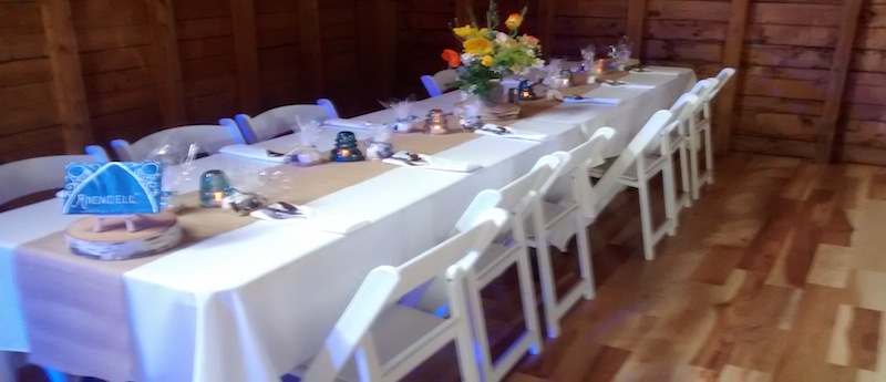 The Big Adventure Team totally sets up the venue space in advance of your wedding celebration adhering to our mutually agreed Barn CAD Layout drawing and Integrated Master Timeline. You will have the opportunity to personalize the wedding barn for approximately one hour in the morning before the wedding celebration. This way it is all set up for a risk free, hassle free Wedding Celebration Event. Ask about our Rehearsal Dinner Wedding Packages if you want to setup the day before.